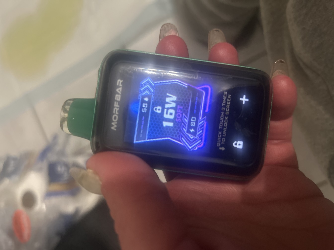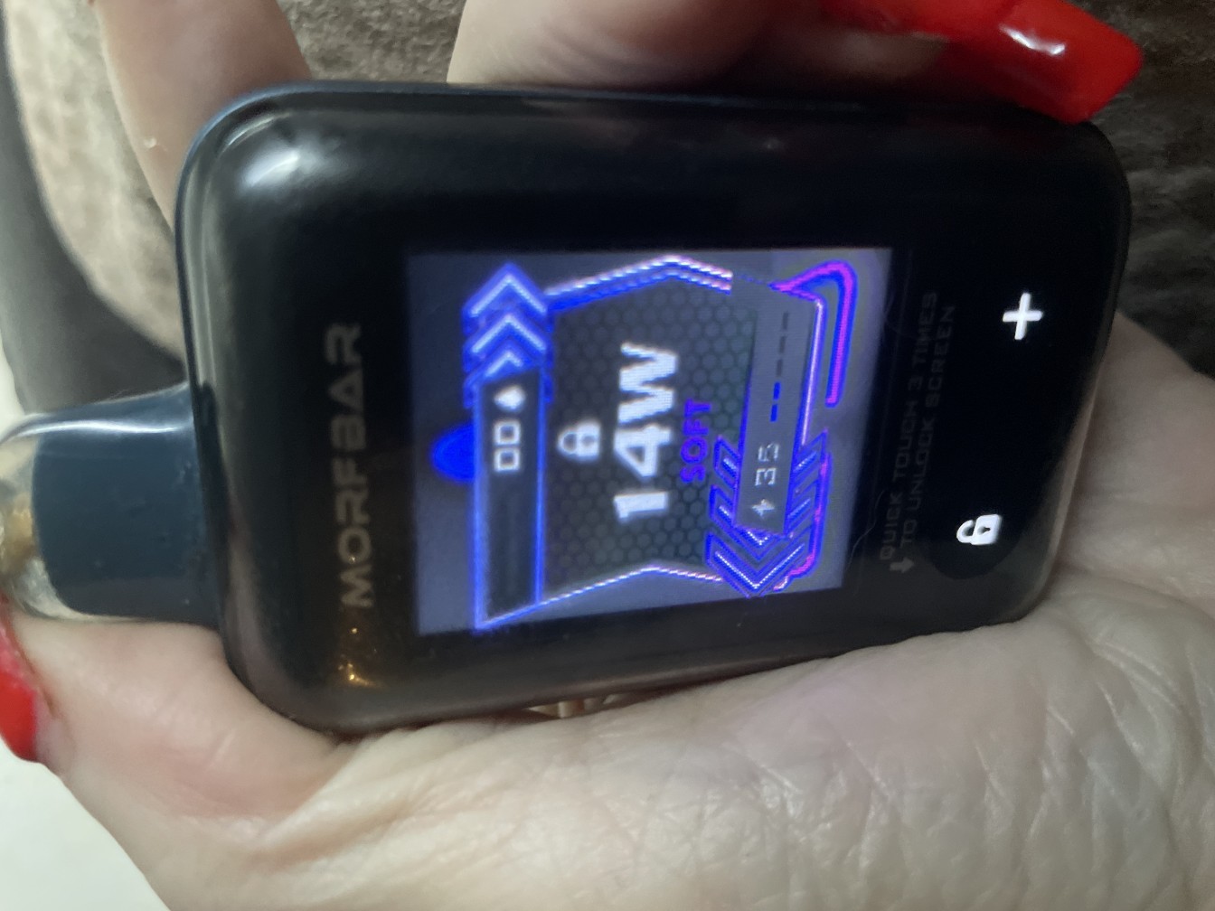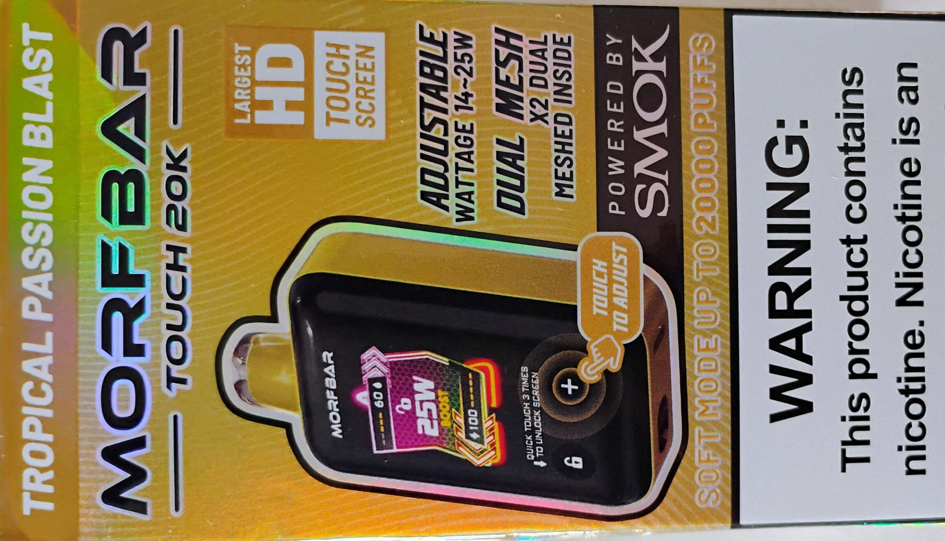 MORF BAR Touch 20K Disposable Vape is a smart vape with a touch screen, satisfying up to 20000 puffs in total with 18ml premium e-juice. MORFBAR Touch 20K is powered by SMOK, which guarantees high quality and excellent flavors. MORFBAR Touch supports as many as three vaping modes, including Soft, Regular, and Boost Mode. The adjustable airflow and output make SMOK MORFBAR more customizable for vapers. The key feature is the touch screen, which replaces buttons. You can click the icon three times to lock or unlock it. Enjoy up to 20000 puffs with SMOK MORFBAR Touch 20K with a touch.